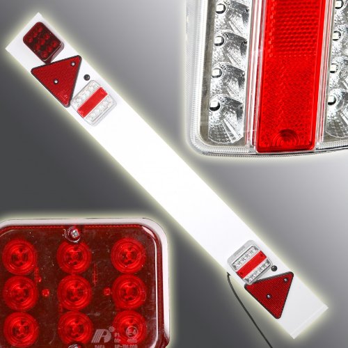 Manche Anhänger haben alte Lampen, die den Anforderungen der StVO nicht mehr gerecht werden, oder einzelne Leuchten gehen kaputt und die Suche nach passenden Leuchten gestaltet sich als schwierig! Oder sie sind Hobbybastler und haben sich einen eigenen Anhänger gebaut, für den Sie die passende Beleuchtung suchen. All diese Probleme können sie mit unserer LED Lichtleiste lösen! Einfach angebracht, haben Sie sämtliche Lichter komplett montiert. Selbst das Nummernschild hat seinen Platz. Und wenn dann ein neuer Anhänger kommt? Einfach abmontieren und an den neuen Anhänger dran! Diese Lichtleiste ist komplett ausgestattet mit LED Leuchten und Reflektoren. Die Lieferung erfolgt inklusive Kabel und 7 poligem Stecker!