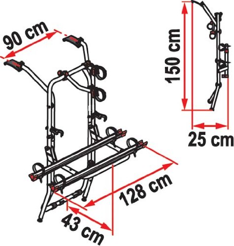 Mit Teleskopschwenkbügel. Grundträger aus eloxierten Alurohren geschützt von einer 15 Micron Silber-Eloxierung. Einfach und schnell montiert, ohne zu bohren. Abstandhalter Bike-Block für die Befestigung des letzten Rades und Schi